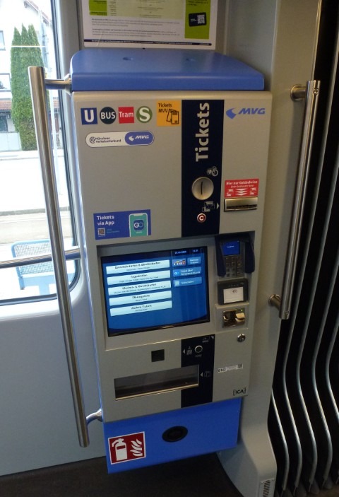 Ticket machines are on board the tram, rather than being located at the tram stops. From these machines, it is possible to buy a wide variety of tickets, whether for single trip journeys, multiple journeys, or for a specific time period (day or a week). These machines accept cash as well as credit and debit cards (including contactless). Helpfully, the ticket machines have multiple language options, including English, French, Italian, Japanese, Spanish and Turkish. For the less adventurous, it is, of course, possible to buy your ticket on your smart phone via the App MVGO.