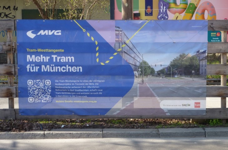 Along Fürstenreider Strasse, MVG has put up large banners advertising the new extension; and there is also a pop-in information point (open on Mondays) where the public can seek more information about this particular project, known as the “west tangent tram” (Tram-Westtangente).